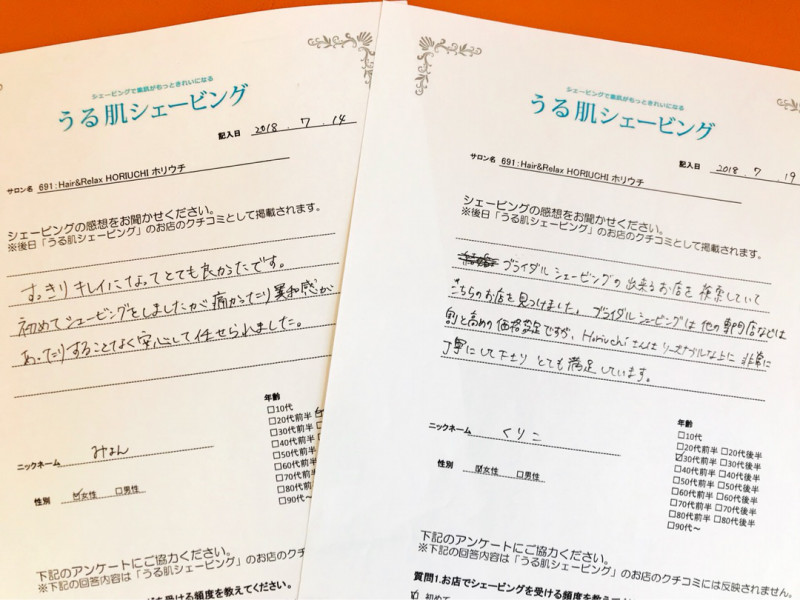 本格ブライダルシェービング お客様の声